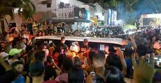 Principal atração das Virgens de Tambaú, a cantora Joelma fechou ao chegar de limousine ao bloco, na noite deste domingo (19), em João Pessoa. Ao chegar ao evento, o carro de Joelma foi cercado por uma multidão que queria ver a loira de perto.