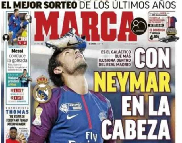 Nesta sexta, o diário Marca estampou uma foto do craque da seleção brasileira na capa e colocou na manchete: “Com Neymar na cabeça”.