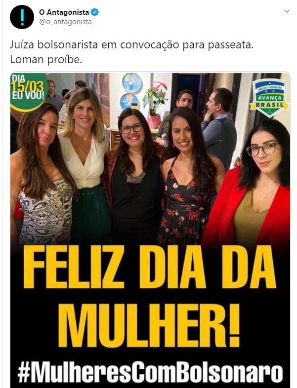 “Juíza bolsonarista em convocação para passeata. Loman proíbe.”