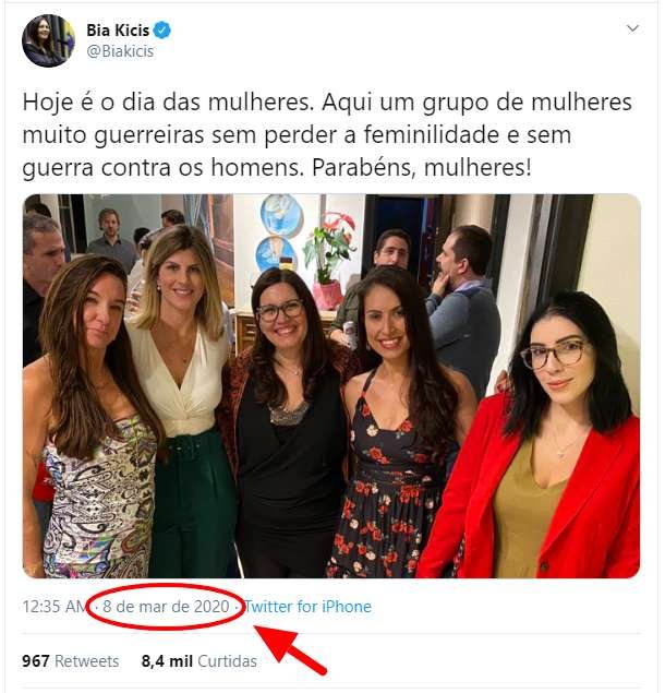 É possível comprovar a resposta da juíza no perfil da deputada Bia Kicis, em uma publicação do dia 08 de março, dia da internacional da mulher.