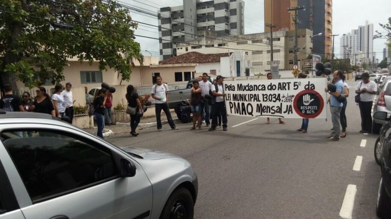Agentes comunitários de saúde de João Pessoa realizam neste momento protesto em frente à sede da secretária municipal de Saúde contra mudanças na Lei municipal 13.034 e a implantação imediata e pagamento de gratificação do PMAQ (Programa de Melhoria do Acesso e da Qualidade na Atenção Básica).
