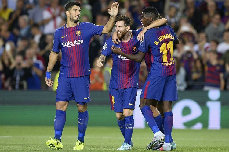Em seu primeiro jogo na Liga dos Campeões após a saída de Neymar para o Paris Saint-Germain, o Barça foi escalado com o trio ofensivo que agora conta com o francês Dembélé como novo companheiro de Messi e do uruguaio Luis Suárez. E desde o começo da partida a equipe espanhola tratou de tentar sufocar o time italiano, que ainda luta para recuperar a sua força defensiva depois das saídas do zagueiro Bonucci e do lateral Daniel Alves, hoje respectivamente no Milan e no PSG.