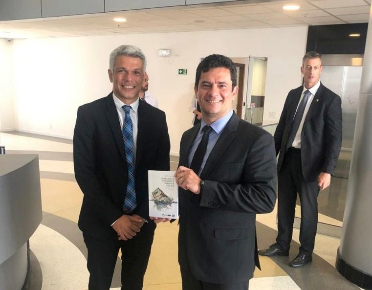 O delegado Fabiano Emídio, da Polícia Federal na Paraíba, entregou nesta segunda-feira (17) um exemplar do livro escrito por ele, “Lavagem de Dinheiro e Paraísos Fiscais – A captura da economia pelo crime organizado”, ao Ministro da Justiça Sérgio Moro.
