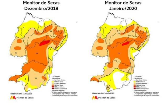 O Monitor de Secas da Agência Nacional de Águas (ANA), divulgado nesta sexta-feira (28), aponta que o estado de seca moderada atingiu o Litoral paraibano em janeiro de deste ano. A região estava tomada por uma seca leve até dezembro de 2019.