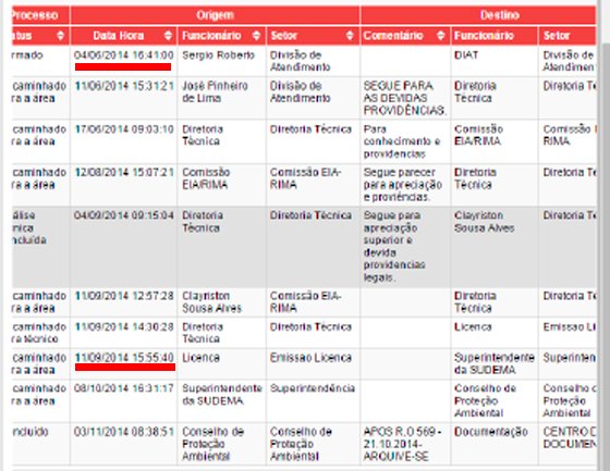 Para se ter uma ideia, a concessão da licença para o Shopping Mangabeira durou vários meses, desde que pedido foi protocolado em 11 de novembro de 2011. Apenas em 5 de junho de 2012 houve a liberação: mais de sete meses, portanto. Mas, segundo os técnicos, esse é tempo médio para a liberação do relatório EIA/RIMA de impacto ambiental.