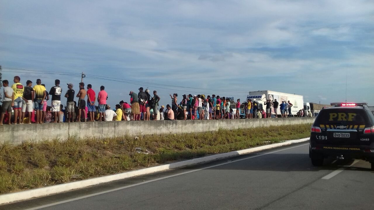 O trânsito do Km 24, a BR 101, perto do município e Mamanguape, na divisa com o Rio Grande do Norte, começou a ser liberado por volta das 16h30 após quase sete horas de negociação entre a Polícia Rodoviária Federal (PRF).