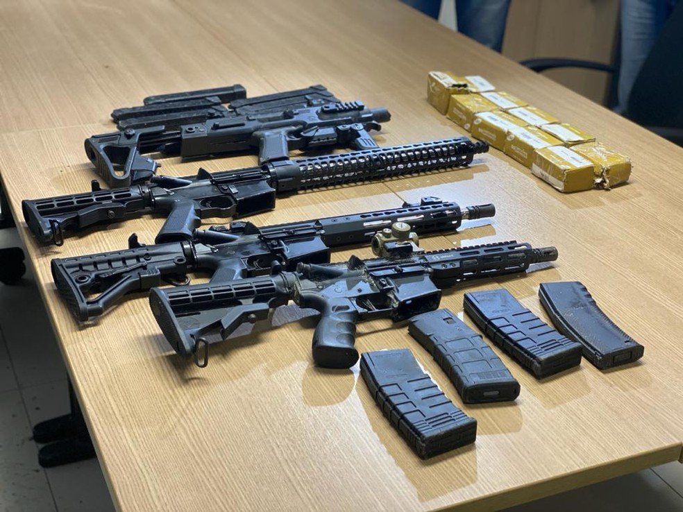 A ação resultou na apreensão de três fuzis 556, uma pistola com adaptador que a transformava em submetralhadora e munições de calibres 556 e 9 milímetros. Três pessoas suspeitas de integrar o grupo também foram conduzidas à delegacia.