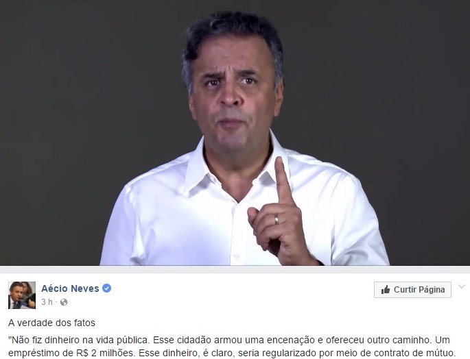 ‘Não fiz dinheiro na vida pública’, diz Aécio em vídeo