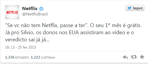 Claro que a NETFLIX não iria perder a oportunidade. Primeiro veio a resposta da NetflixBrasil pelo Twitter: