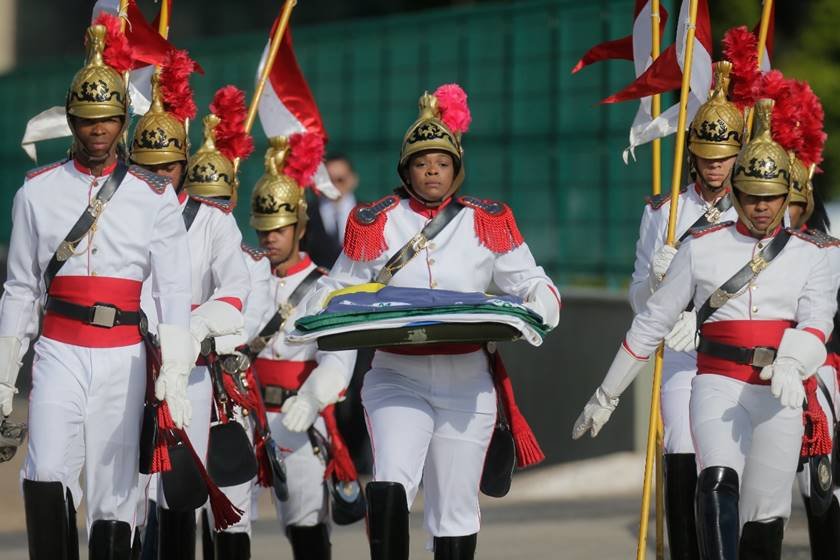 Pela primeira vez na história, uma mulher militar foi responsável pelo hasteamento da bandeira brasileira e do Mercosul na manhã desta sexta-feira (8/3) no Palácio do Planalto, em Brasília. A sargento Kareen Samya Souza pertence ao 1º Regimento de Cavalaria de Guardas, oficialmente chamado de Dragões da Independência.