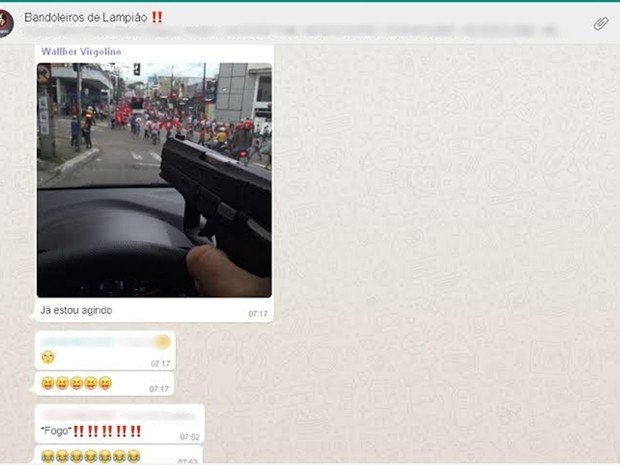 Além da fotografia o delegado complementa a informação com a legenda “Já estou agindo”, em referência a uma possível ação para acabar com o protesto. As postagens foram feitas às 7h17 de terça-feira, no grupo durante as manifestações contrárias ao impeachment da presidente Dilma Rousseff, registradas em 21 estados, incluindo a Paraíba, e no Distrito Federal. Poucos minutos antes da publicação do delegado e secretário de Justiça e Cidadania do Rio Grande do Norte, participantes do grupo publicaram fotos das manifestações registradas em João Pessoa e um link de uma reportagem sobre os protestos do MST nas rodovias paraibanas.