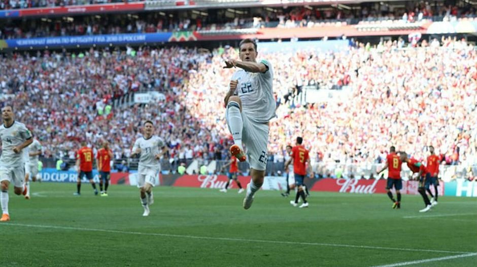 O próximo adversário dos russos será Croácia ou Dinamarca, que se enfrentam às 15h deste domingo, em Níjni Novgorod.