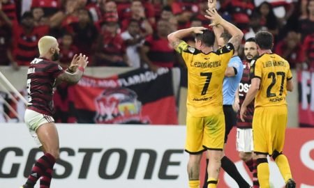 Expulso aos 29 minutos do segundo tempo da derrota do Flamengo para o Peñarol por 1 a 0, nesta quarta-feira, no Maracanã,...