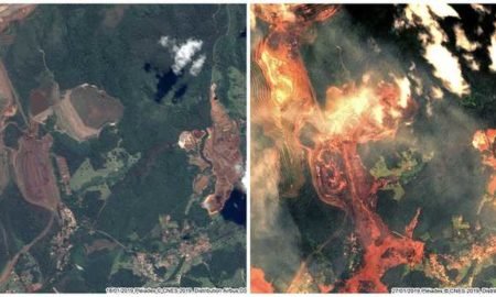 Imagens feitas por satélite mostram a dimensão do estrago causado pelo rompimento da barragem de rejeitos da Vale, em Brumadinho (MG). Depois...
