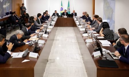 Pela segunda vez no mês e após a posse, o presidente Jair Bolsonaro e os ministros do seu governo se reuniram para...