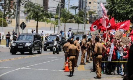 O detento e ex-presidente Luiz Inácio Lula da Silva (PT) chegou às 13h30 à sede da Justiça Federal, no bairro do Ahú....