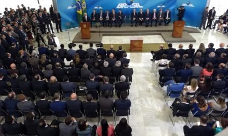 O presidente Michel Temer deu posse a dez ministros na tarde de hoje (10), no Palácio do Planalto. Em discurso, ele afirmou...