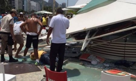 Quatro das vítimas tiveram ferimentos leves e as outras duas foram encaminhadas a hospital com ferimentos moderados A estrutura do teto de...