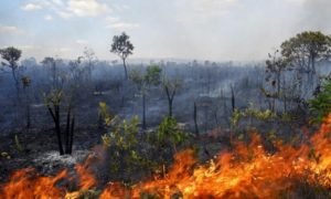 O fogo que se alastra pela região sul do Amazonas, uma das áreas com mais focos de incêndio hoje em toda a...
