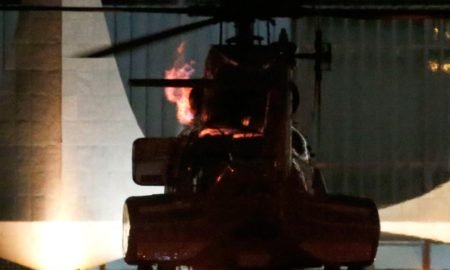 O helicóptero que levou a presidente Dilma Rousseff do Palácio da Alvorada à Base Aérea de Brasília na noite desta quinta-feira (24)...