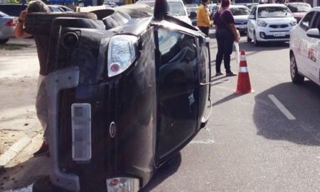 Um carro tombou após colidir com uma árvore na tarde desta sexta-feira (22) na Avenida Epitácio Pessoa, no sentido Bairro-Centro, em João...