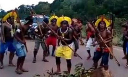 Tribos indígenas da Paraíba estão bloqueando neste momento o trânsito no km 24 da BR-101, sentido João Pessoa/Natal, logo após o posto...
