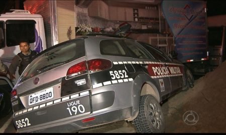 Dois policiais militares ficaram feridos após um carro da PM capotar ao tentar desviar de uma moto na noite do domingo (8)...