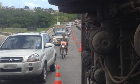 O trânsito em uma das faixas na BR-230 segue lento 24 horas depois que uma carreta tombou no Viaduto Ivan Bichara, conhecido...