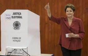 A candidata à reeleição pelo PT, Dilma Rousseff votou na manhã deste domingo em Porto Alegre, no Rio Grande do Sul. A...