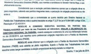 O Tribunal Regional Eleitoral (TRE-PB) protocolou nesta segunda-feira (14) um novo documento do diretório nacional do Partido dos Trabalhadores assinado pelo presidente...