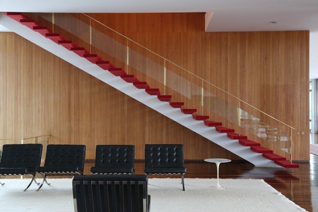 A fachada dos fundos é tão fotogênica quanto a da frente. Olhos atentos percebem a varanda suspensa atrás dos pilares esculturais que viraram símbolo da cidade. Ali foi instalada – e logo depois retirada – a polêmica rede de proteção necessária à segurança de Michelzinho, filho do presidente Temer. Pouco depois do ocorrido, as muitas críticas à descaracterização do projeto contribuíram para que a família permanecesse no Palácio do Jaburu.