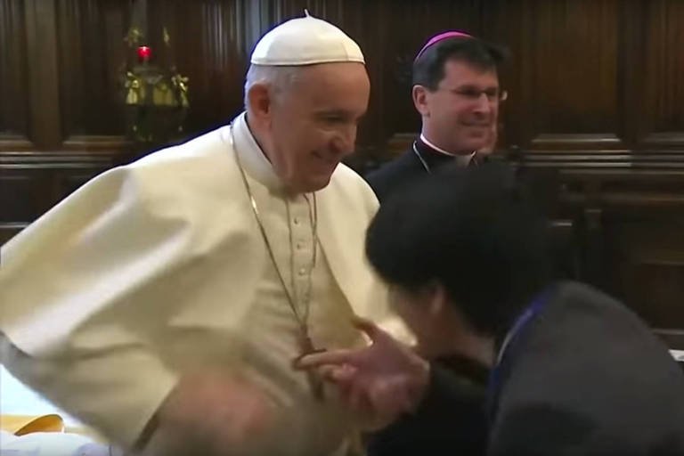 Na última segunda (25), durante uma visita a Loreto, no centro-leste da Itália, o líder da Igreja Católica cumprimentou pessoas que faziam fila para vê-lo. A partir de determinado momento, no entanto, o Pontífice, visivelmente desconfortável, começa a impedir que os fiéis beijem o anel papal, chegando até a puxar a mão bruscamente.