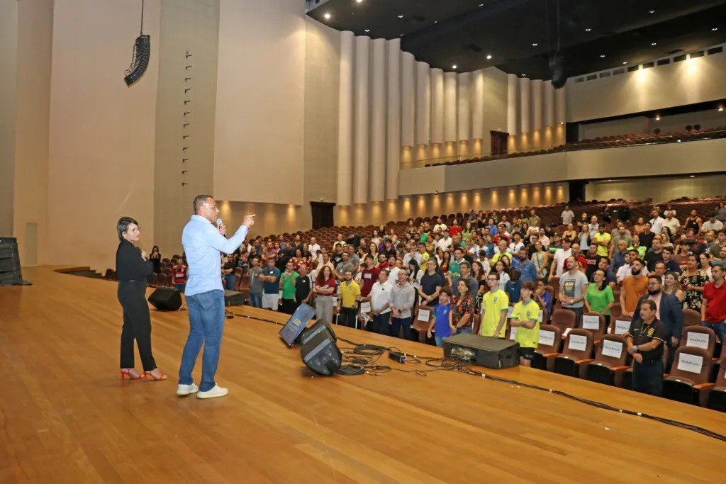 A trajetória vitoriosa do jogador Cafu, pentacampeão da Seleção Brasileira de Futebol, e seu papel de liderança junto ao time brasileiro que venceu a Copa do Mundo em 2002 serviram de pano de fundo em palestra para motivar servidores da Prefeitura de João Pessoa. O encontro aconteceu durante o Congresso Técnico Esportivo Motivacional realizado pela Escola de Governo Municipal (Esgov), na tarde desta segunda-feira (17), no Teatro Pedra do Reino.