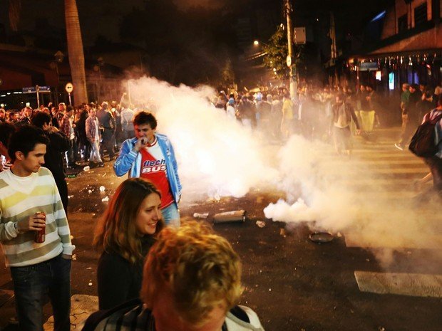 A PM admitiu o uso da força, mas negou a utilização de bombas de efeito moral para dispersar as pessoas das ruas – estrondos, porém, foram ouvidos nas imediações.