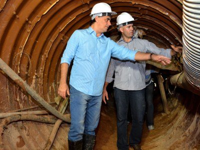 O prefeito Luciano Cartaxo verificou, na manhã desta quarta-feira (17), o andamento dos trabalhos de reestruturação do Parque Solon de Lucena. Até o próximo semestre, a Prefeitura de João Pessoa vai concluir a etapa mais complexa da obra, que é a construção de um túnel de escoamento para as águas da Lagoa. O canal já possui 580m de extensão, faltando apenas 60m de escavação para que seja concluído.