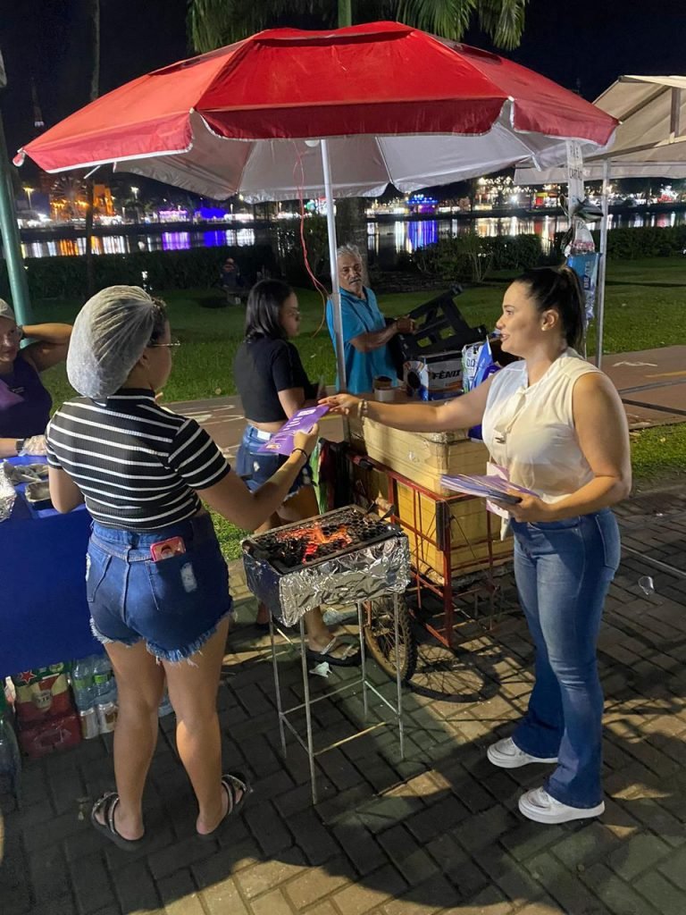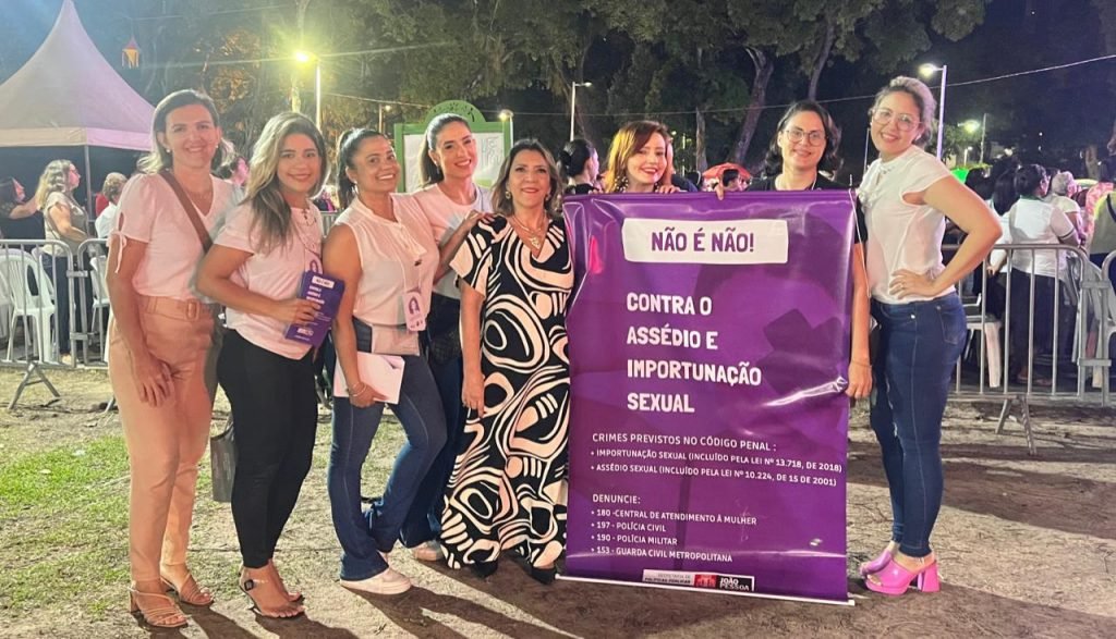 A Prefeitura de João Pessoa, por meio da Secretaria Extraordinária de Políticas Públicas para as Mulheres (SEPPM), está realizando a campanha ‘Não é Não’ durante a tradicional Festa das Neves. O objetivo é prevenir e coibir crimes de assédio, importunação sexual e violência de gênero. As equipes distribuem panfletos e esclarecem dúvidas da população durante o evento, que iniciou no dia 27 de julho e segue até o dia 5 de agosto, no Parque Solon de Lucena.