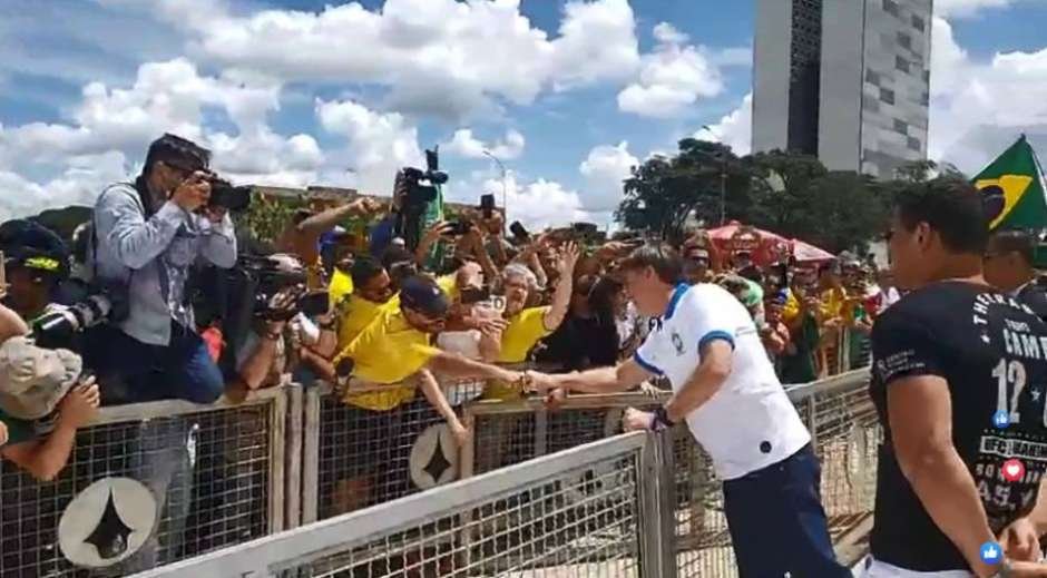 Ele apareceu na rampa para cumprimentar manifestantes com a camiseta da Seleção Brasileira, como mostrou em uma transmissão ao vivo no Facebook. Após apelo dos manifestantes, Bolsonaro desceu a rampa do Palácio do Planalto até o nível da rua para interagir com os seus apoiadores atrás de duas grandes que o separa da aglomeração.