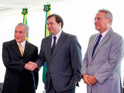 Os presidentes da Câmara dos Deputados, Rodrigo Maia, e do Senado Federal, Renan Calheiros, reúnem-se hoje com o presidente interino da República, Michel Temer, às 20 horas, no Palácio do Jaburu.
