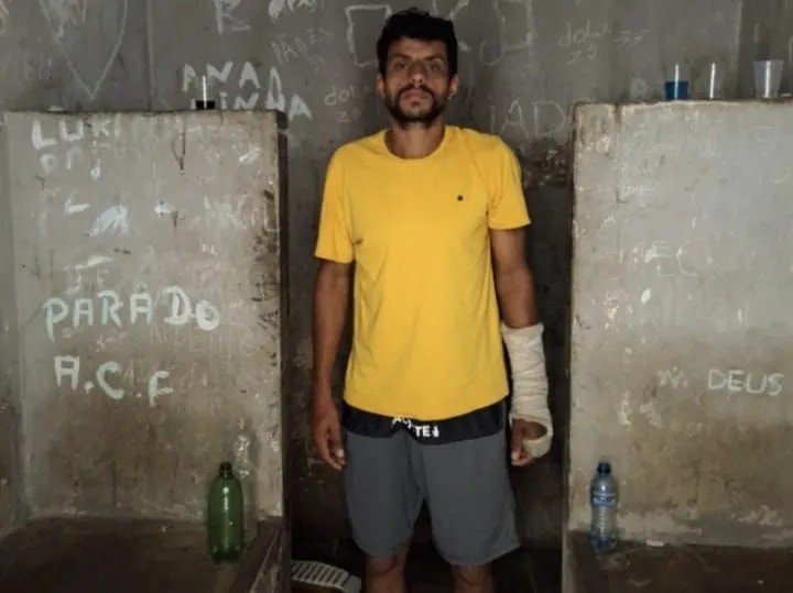O preso foi reencaminhado para audiência de custódia e dessa vez, os policiais usaram também algemas de tornozelo para que o homem não fugisse novamente.