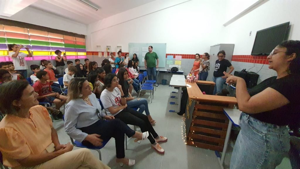 A professora Luciana Matos, responsável pelo acompanhamento do projeto na escola, conta que elaborou a dinâmica do teatro de bonecos junto com os alunos e comenta a importância de abordar conteúdos para a formação cidadã de cada um deles. “Foi uma proposta bem interessante, que chegou até nós através do Centro de Referência e as crianças gostaram bastante da ideia. Os alunos estudaram sobre a questão da violência contra a mulher, até para poderem formular o roteiro. Estudaram também um pouco sobre a questão do Centro de Referência, como funciona, quais tipos de serviços são oferecidos, e foi importante também para a questão da cidadania deles, porque no dia-a-dia, no cotidiano deles, alguns vivenciam determinadas situações. Eu acredito que agora eles vão estar mais preparados para poder até identificar e, assim, ajudar de alguma forma”, explica.
