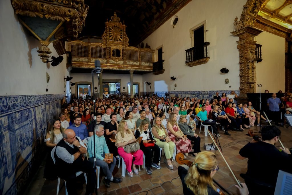 O público lotou o Centro Cultural São Francisco, no Centro Histórico da Capital, na noite desta sexta-feira (29), para assistir ao concerto da Orquestra Sinfônica Municipal de João Pessoa, sob a regência do maestro chileno Carlos Dourthé. O evento marcou o encerramento do 8º Festival Internacional de Música de Câmara da Universidade Federal da Paraíba (UFPB), apoiado pela Fundação Cultural de João Pessoa (Funjope).