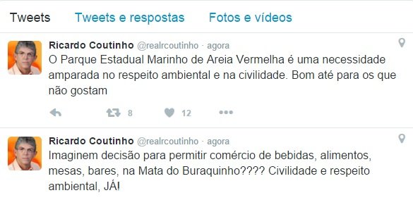 “O Parque Estadual Marinho de Areia Vermelha é uma necessidade amparada no respeito ambiental e na civilidade. Bom até para os que não gostam”, disse.