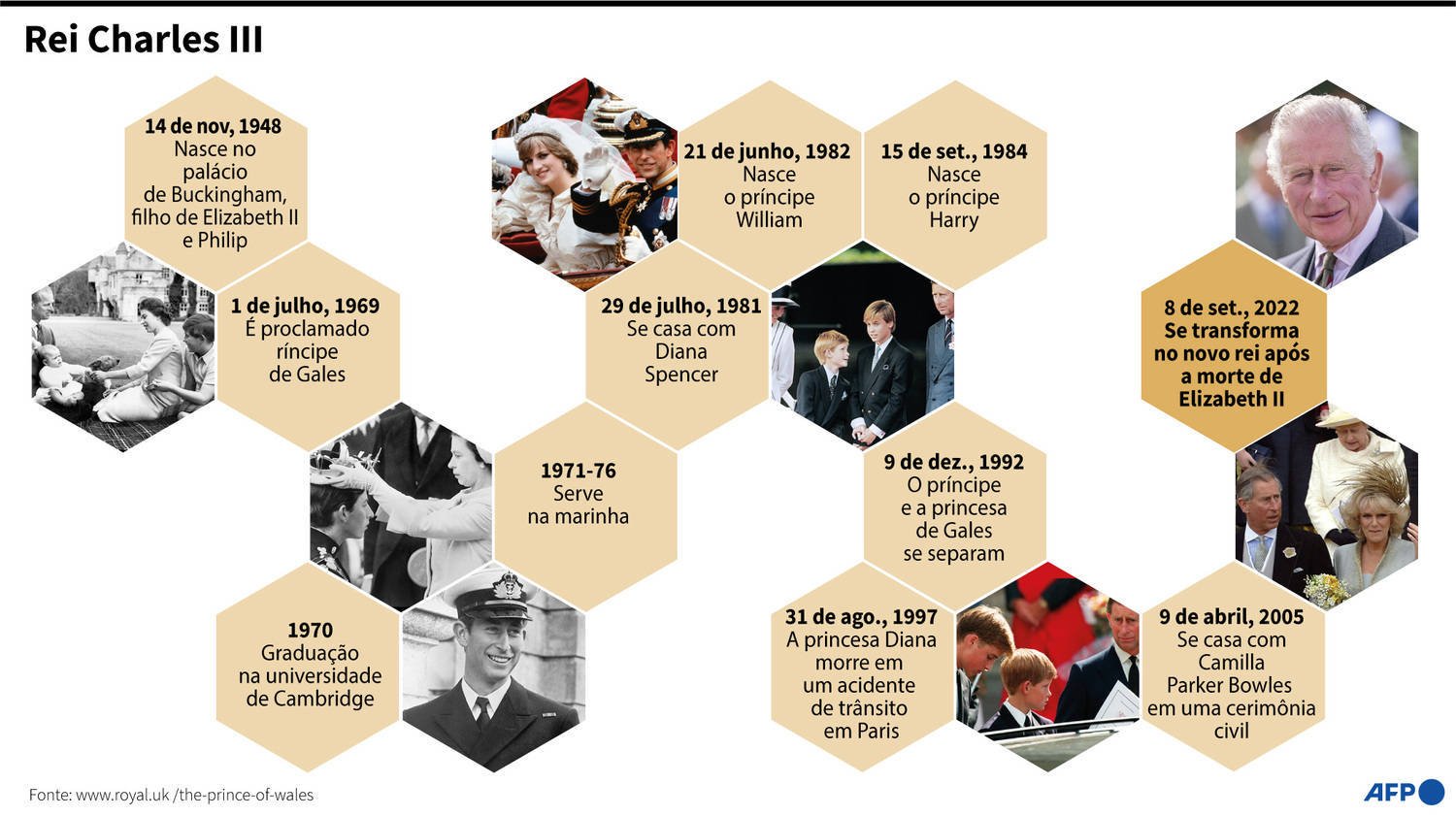 Charles 3° assumiu o trono imediatamente após a morte de Elizabeth 2ª. O Conselho de Ascensão será convocado dentro de 24 horas e realizado no Palácio de St. James, a residência oficial do soberano, para proclamar o sucessor.