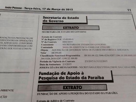 Depois, quem tiver o cuidado de dar uma lida, ainda que rápida nesta edição de hoje (dia 17 de março) vai comprovar que o Governo acaba de contratar R$ 68.050,00 de diversos tipos de flores em coroas e arranjos a uma mesma empresa. O contrato foi assinado pela secretária-executiva Léa Silva (Casa Civil), e tem validade até o final do ano.