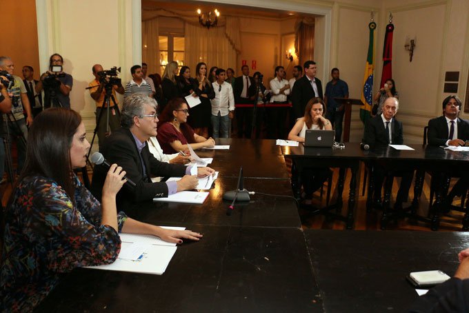 O governador Ricardo Coutinho concedeu, nesta última quinta-feira (25), uma entrevista coletiva no Palácio da Redenção, para falar sobre as pesquisas relacionadas à microcefalia e apresentar o trabalho desenvolvido pela Rede de Cardiologia Pediátrica da Paraíba, que se destaca no Brasil e atrai a atenção de diversos países. Além da imprensa local, cinco veículos de comunicação internacionais participaram da coletiva: TV Al Jazeera English, o The Wall Street Journal, a TV Alemã ARD, a American National Public Radio e a Associated Press. A entrevista também foi transmitida por meio de videoconferência para países como Austrália e Canadá.