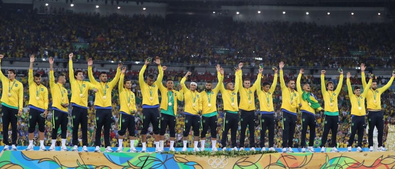 O pódio onde a seleção brasileira masculina de futebol recebeu a medalha de ouro dos Jogos Olímpicos está disponível para compra no site de site de leilões da Rio-2016. A estrutura foi dividida em cinco partes, que recebem lances separadamente.