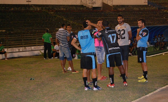 E o Campeonato Paraibano de 2014 não para de promover cenas inusitadas. Por conta da interdição dos estádios em João Pessoa (Almeidão e Graça) a Federação Paraibana de Futebol decidiu marcar uma rodada dupla para o Estádio Amigão, em Campina Grande, nesta quarta-feira. Só que ninguém contava que esse fato acabasse gerando um “congestionamento” de atletas na beira do gramado, antes da bola começar a rolar para os jogos entre Auto Esporte e CSP e, na sequência, Santa Cruz de Santa Rita e Sousa.