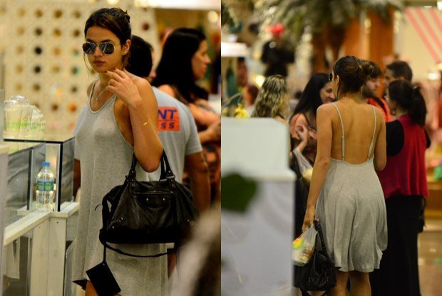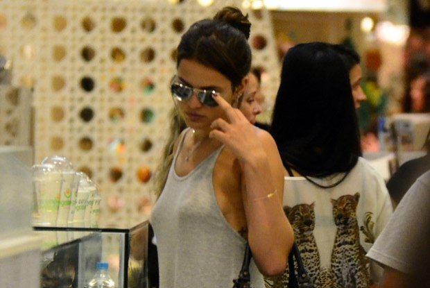 Bruna Marquezine resolveu ousar no modelito para fazer compras com a mãe. Sem sutiã, a atriz esteve em um shopping na Barra da Tijuca, na Zona Oeste do Rio, na tarde desta quinta-feira. Ao perceber a presença do fotógrafo, Bruna resolveu esconder que estava sem sutiã colocando os braços na frente dos seios. Ainda assim, a atriz chamou atenção e atraiu olhares nos corredores do shopping.