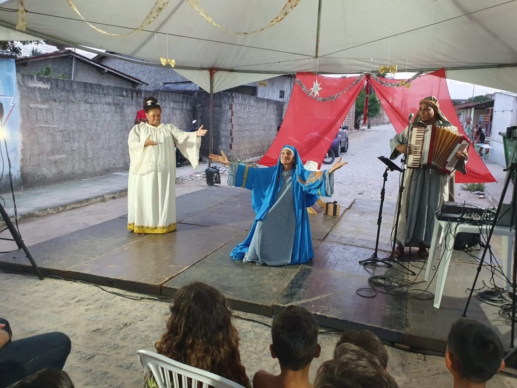 A Secretaria de Habitação Social da Prefeitura de João Pessoa encerrou na noite desta quarta-feira (20), as atividades sociais do ano de 2023, realizando uma confraternização com os moradores dos Residenciais Vista Alegre, em Colinas do Sul, e do Vista do Verde, no Bairro das Indústrias, ocasião em que foi apresentado o “Auto de Natal – Nasceu o Salvador”, uma montagem do grupo de Teatro Útero, que tem o apoio da Funjope.  A confraternização teve a presença massiva dos moradores dos dois residenciais e na ocasião foi feita distribuição de pipocas, pirulitos, algodão doce e também o sorteio de cestas de Natal.