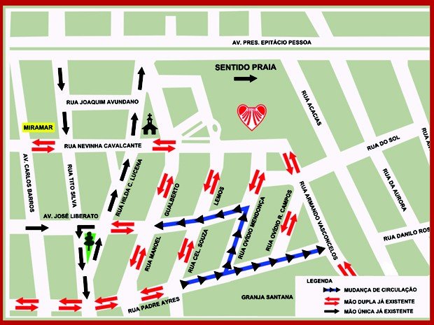 mudanca_de_transito_em_miramarAlgumas ruas do bairro de Miramar, em João Pessoa, estão com o trânsito modificado a partir desta terça-feira (28). O objetivo, segundo a Superintendência Executiva de Mobilidade Urbana de João Pessoa (Semob), é melhorar a circulação nas vias e aumentar a segurança para pedestres e motoristas. De acordo com o órgão, a mudança é necessária porque as vias concentram polos geradores de tráfego onde foi observada uma demanda considerável de veículos.